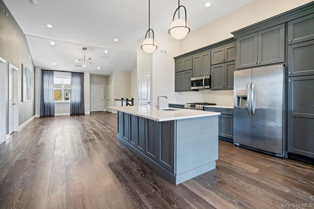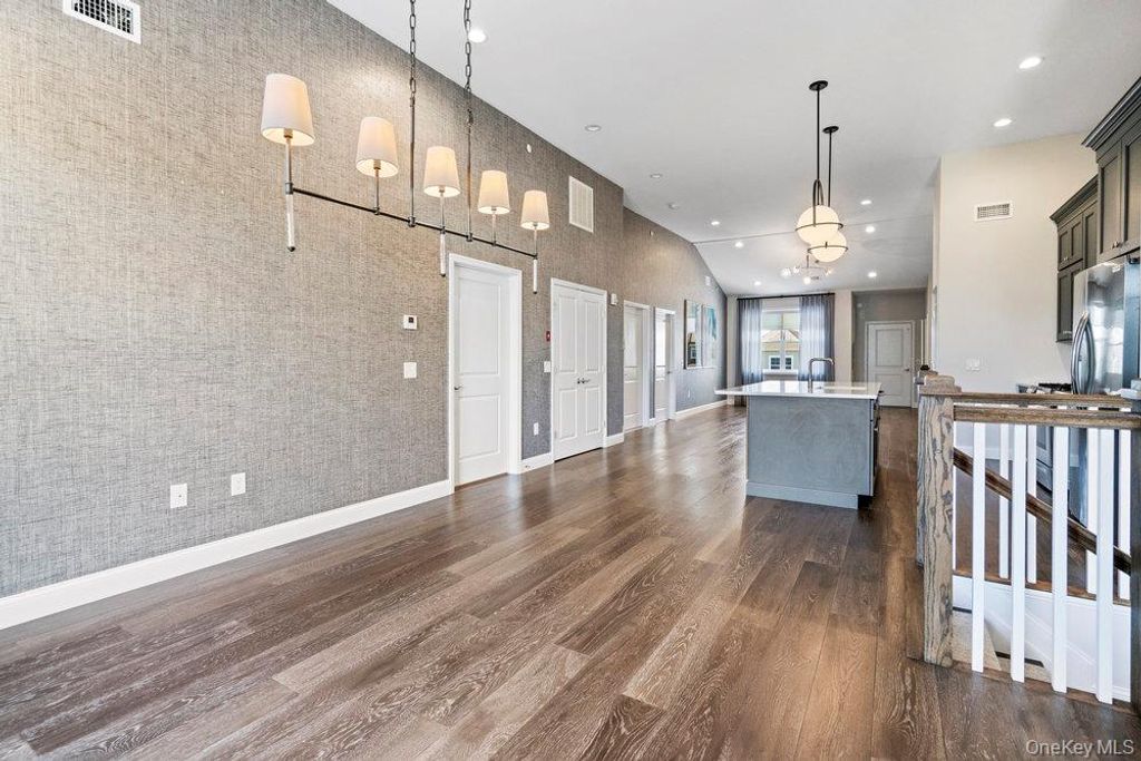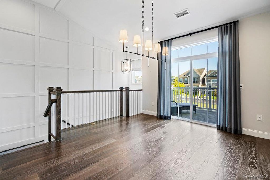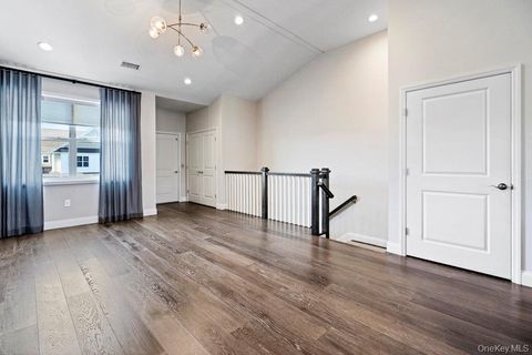 Welcome to resort-style living in the prestigious Country Point Meadows 55+ gated community. This builders model offers upgrades through out and elegant living at its best. With soaring ceilings, rich wood floors, private elevator and stairs with custom red oak post and railings. Open floor plan. Top of the line Chef's kitchen with double stacked cabinets, solid wood doors, crown molding, stainless steel appliances, extended center island with tons of storage and Silestone counters with eased edge. Kohler stainless steel sink and faucet. Open dining room with sliding glass doors leading to your private balcony. Spacious living room with high ceilings and wood floor. Don't feel like taking the stairs today, then take your private elevator. Generously sized closet, offering ample space for coats and storage. Primary bedroom offers a custom walk in closet and a stunning en suite bathroom. Guest bedroom is bright with wood floor and double closet. Guest bathroom has upgraded tile and double vanity. Full sized LG washer and dryer. Garage, driveway and private patio in the back. This home is located minutes to the vibrant community club house. Indoor you can enjoy a fitness room, yoga room, beautiful lounge with bar, sauna, steam room, ballroom and a room for card games. Outside you have two pools, cabanas, spacious patio area with couches, fire pits, barbecues and outside bar. There are also tennis and pickleball courts. This community benefits from low taxes and HOA fees, making luxurious living affordable in a prime location. Close to major roadways, restaurants and shopping.